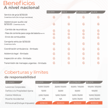 Esta póliza cubre los daños que se le ocasione a otra propiedad, peatones, conductores de otro vehículo, etc., y los gastos médicos según el plan: Silver, Gold, Platinum o Black.
